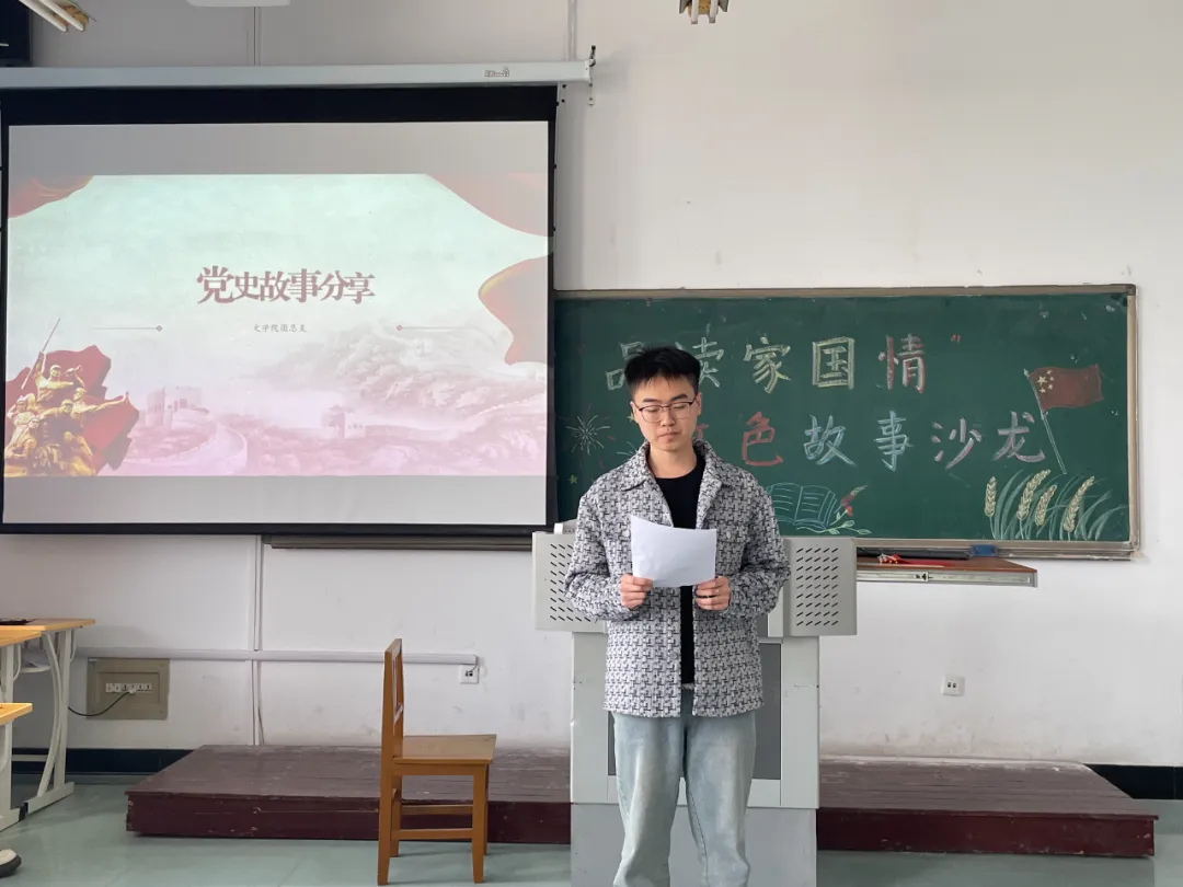 为深入贯彻习近平总书记关于党史学习教育的重要讲话和重要指示批示精神,加深大学生对党史的了解和认识,激发文学院学生的爱国热情,文学院团总支组织部在4月27日下午3点于综合楼623举办“品读家国情”红色故事沙龙活动。团总支副书记张力文、饶凯伦,组织部部长邓昕蕊,副部长王际豪,生活质保部部长王美熙,学生媒体中心文书部副部长刘相禹应邀出席。此次活动由毕乃元、赵致远同学主持。