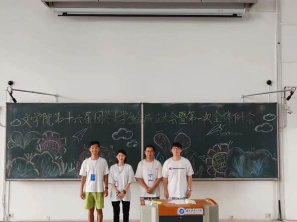 为了增进文学院学生之间的交流与沟通,加强学生干部队伍建设明确新学期的学习目标与方向,促进学院各项工作的顺利开展,8月18日16:30,文学院于文科楼115教室召开第十六届文学院团总支学生会成立大会暨第一次全体例会。辅导员张东影、邸千桐出席本次会议,文学院第十六届团总支学生会全体成员参会。学生会主席何宏洋担任主持人。