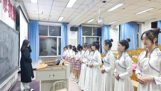 此次活动由文礼部部长田丽娅主持,副部长李琳辅讲。在培训过程中,部长田丽娅先讲解了有关礼仪姿态的理论知识,围绕着“站”“立”“迎”“行”四方面进行了指导和训练,并对礼仪部成员进行了颁奖仪式的礼仪动作练习,将理论与实操有机结合,为礼仪部成员带来了生动、精彩、实用的礼仪培训。