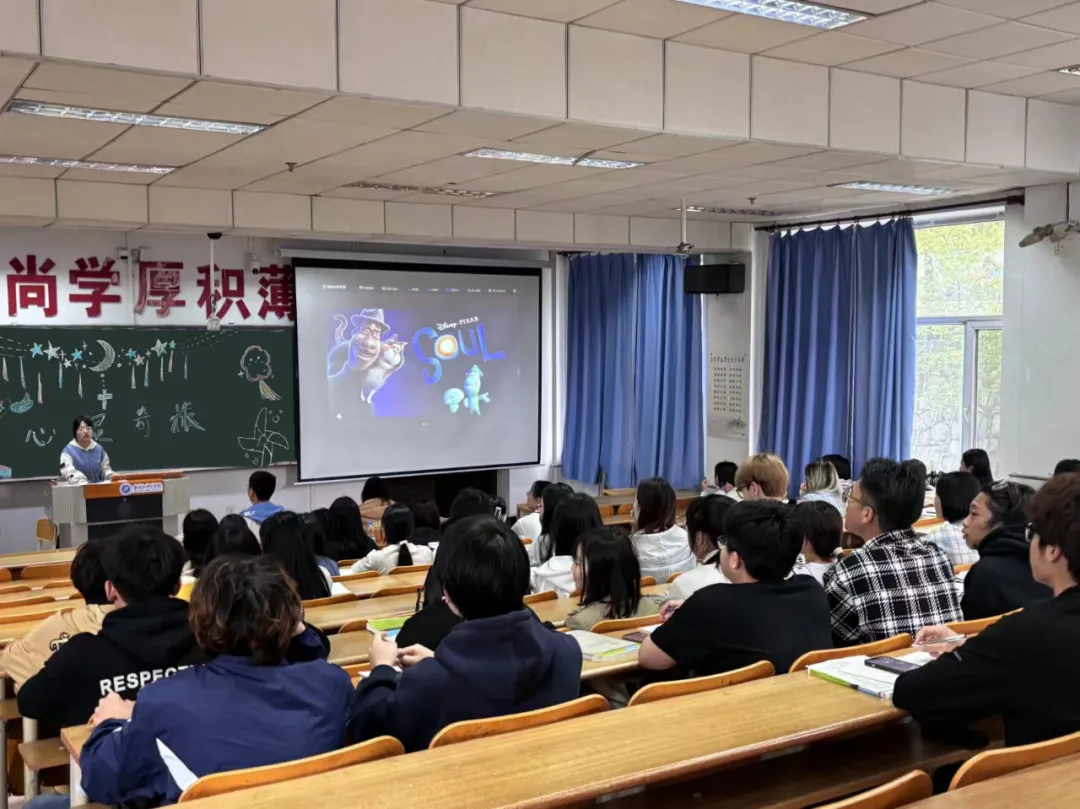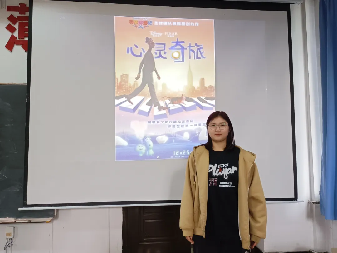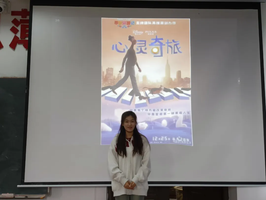活动伊始,主持人余博雅为在场的同学们详细介绍了本次活动的背景、目的以及流程。她表示此次观影活动旨在通过《心灵奇旅》这部影片,引导大家深入探索内心世界,反思生活的意义与价值,并希望通过影片传递积极的生活态度和正确的价值观,激励大家能够以乐观向上的心态来面对生活中的困难和挑战。