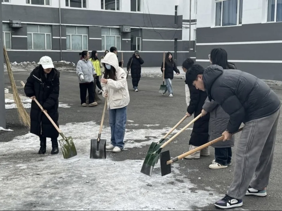 2月26日下午,一场“破冰行动”拉开了劳动实践序幕。面对文科楼北面路上的积雪,文苑连心志愿服务队的志愿者们闻令而动,铁锹破冰除险,扫帚清道排障,经过两个小时的鏖战,最终为师生开辟出了“平安通道”。这场特殊的劳动课堂中,冻僵的手指与滚烫的青春在寒风中交响,诠释着劳动最光荣的真谛。