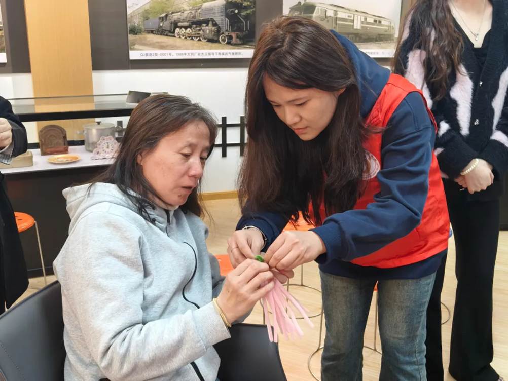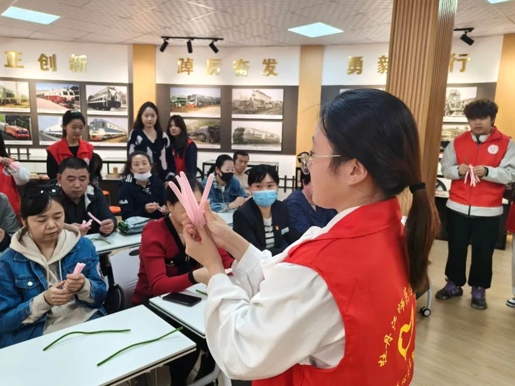 手工环节中,志愿者张皓雪带领居民们制作扭扭棒玫瑰花。大家围坐桌前,指尖缠绕彩条,细心卷出花瓣形状。一朵朵栩栩如生的“玫瑰”在谈笑间诞生,居民们将花束或赠予彼此,或留作纪念。