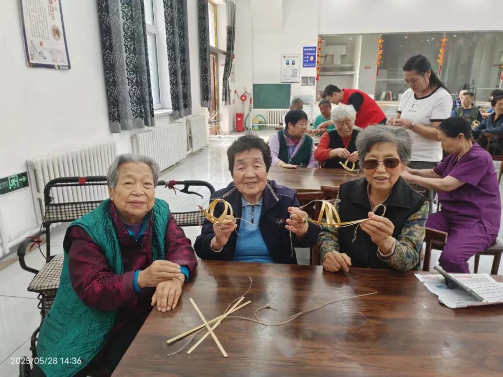 活动尾声,最温情的时刻到来。志愿者们轻轻握住老人的手,将寓意健康长寿、福气环绕的五彩绳(长命缕)系在他们的腕间。红、黄、绿、白、黑的丝线,缠绕着最真挚的祝福。一位奶奶抚摸着腕上的彩绳,动情地说:“孩子们的心意真暖,这彩绳好看,寓意也好,我得一直戴着!”最后,全体人员手持亲手制作的龙舟与五彩绳合影,定格下这充满爱与温暖的瞬间。