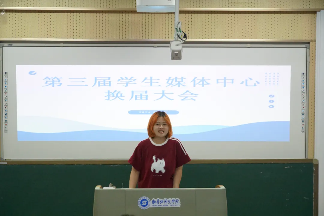 会议第三项议程,第三届学生媒体中心候选人进行竞选演讲。演讲内容主要从自我介绍、竞聘意向、竞聘优势、工作规划四个方面展开,充分展示了自己的才能与潜力,以及乐于奉献、服务同学、共创辉煌的决心与担当