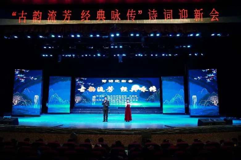 为深刻落实“以文育人,以文化人”的教育理念,12月15日,牡丹江师范学院文学院联合新华小学在牡丹江师范学院音乐厅举办了“古韵流芳,经典咏传”诗词迎新会,牡丹江市教育局、牡丹江市文联、爱民区委区政府、爱民区教育局、牡丹江市诗词楹联家协会、牡丹江市书法家协会、牡丹江市朗诵者协会、牡丹江师范学院相关职能部门领导及社会各界人士共同见证本次盛会。
