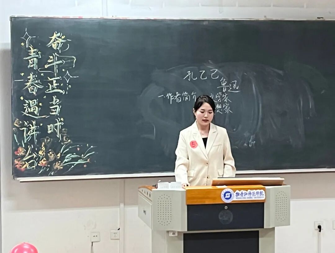 讲台上,选手们精神饱满,思路清晰,环节紧凑,设计合理,表达准确流畅,教态大方得体,别出心裁的授课朗诵感染观众的心弦,多维的课堂互动点燃台下同学的激情,极具个人特色的授课风采引起现场的频频掌声。