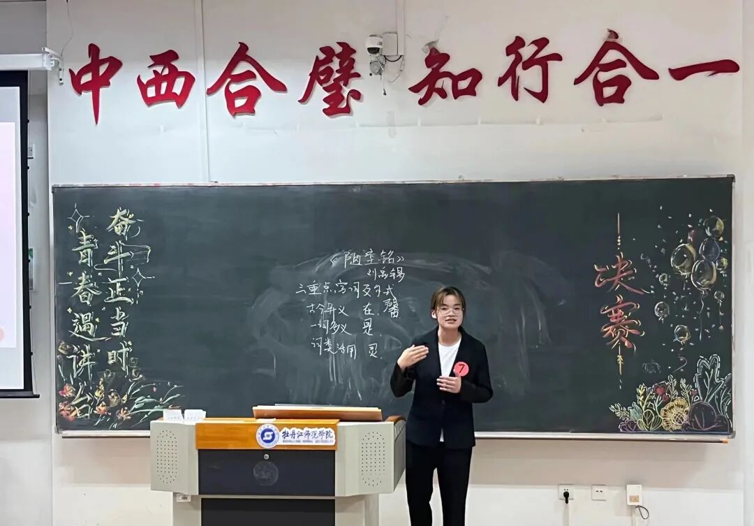 4月26日晚6:00,文学院于综合楼427举办青春讲台决赛,李莹副教授、汉语言文学专业系主任胡宗华、21级辅导员纪伟担任本次大赛的评委,辅导员贝思雨、程雪佳、张东影担任本次大赛的嘉宾。陆兵和王梁主持本场比赛。