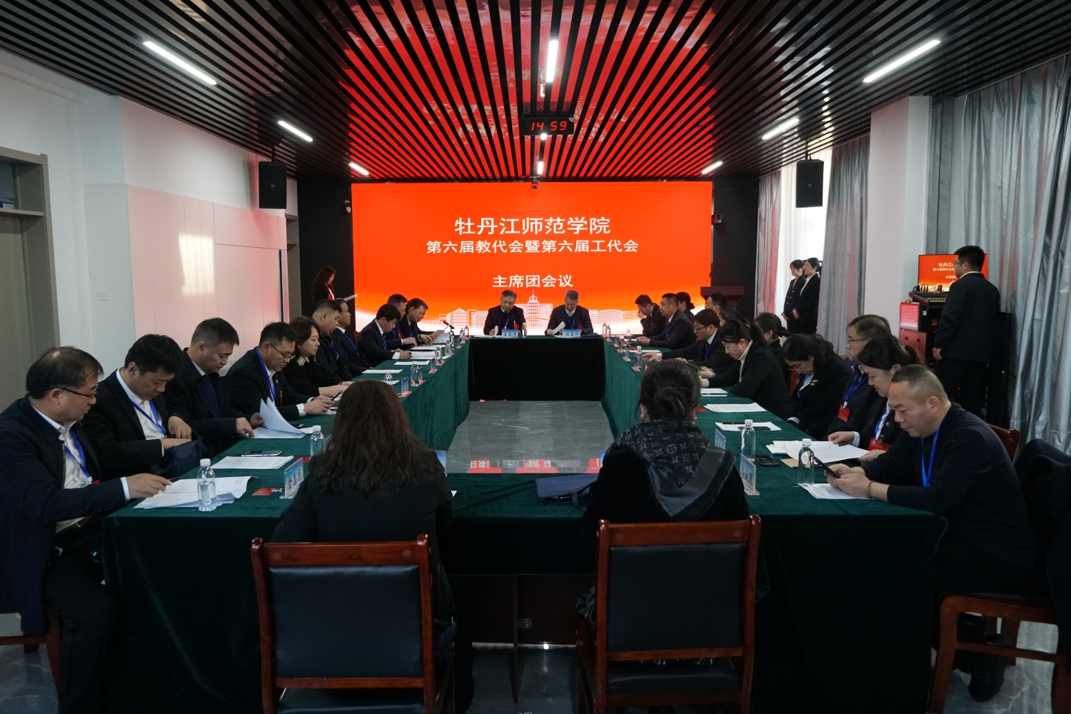 学校第六届教职工代表大会暨第六届工会会员代表大会在激昂的牡丹江师范学院校歌声中圆满闭幕。