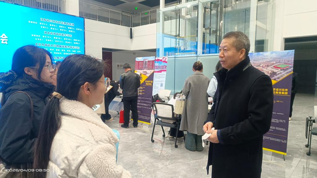 4月9日上午,学校2026年春季促就业攻坚行动系列活动——金职人才教育师资专场招聘会在教师教育实训楼大厅顺利举办。院长、党委副书记丛喜权,副院长、党委常委张晓祥出席活动;各二级学院党委书记、副书记,毕业班辅导员及2026届毕业生参加活动。