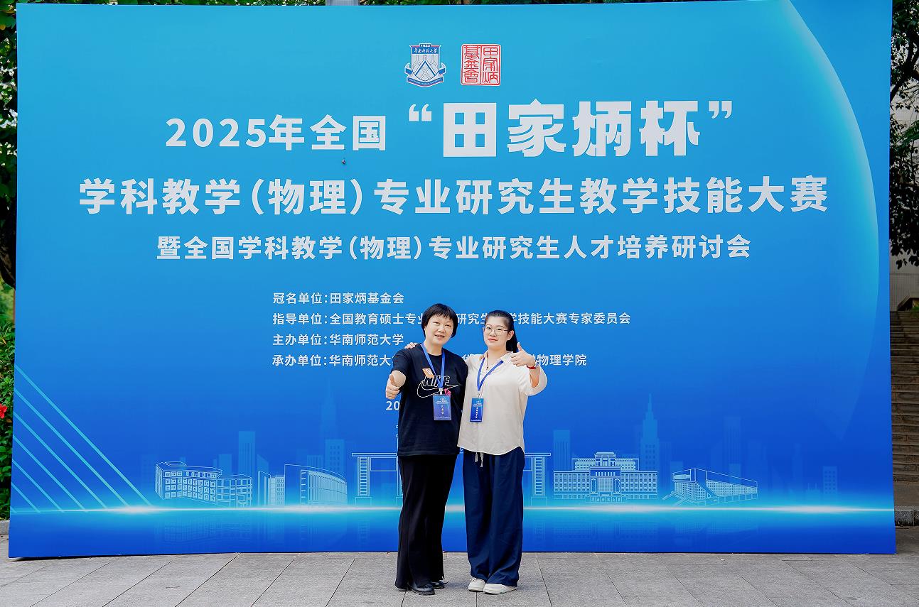 近日,2025年全国“田家炳杯”全日制教育硕士专业学位学科教学(物理)专业研究生教学技能大赛决赛暨全国学科教学(物理)专业研究生人才培养研讨会在华南师范大学圆满落下帷幕。我校2024级学科教学(物理)专业研究生崔炜烨在左桂鸿老师的带领下,凭借着扎实的专业功底、创新的教学设计和出色的临场表现,从众多优秀选手中脱颖而出,荣获大赛一等奖;郑友进老师荣获“优秀指导教师奖”。