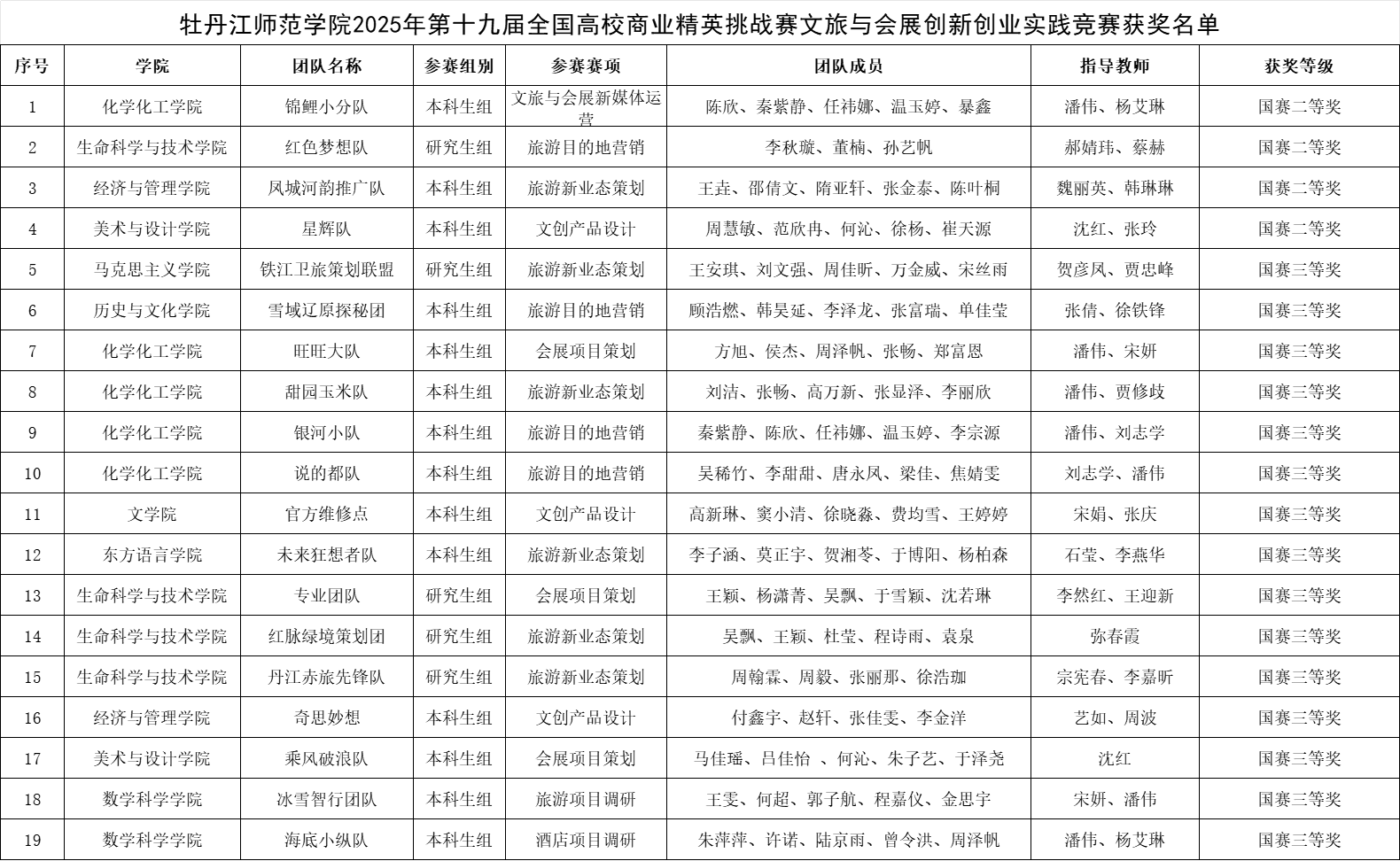国奖+19!我校学生在2025年第十九届全国高校商业精英挑战赛文旅与会展创新创业实践竞赛中喜获佳绩
