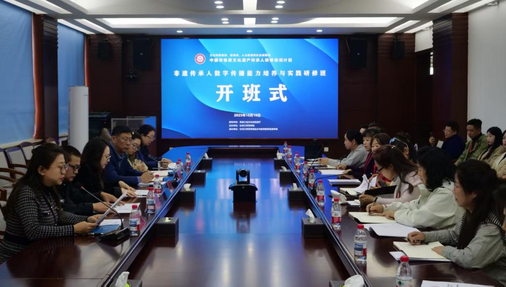 10月10日上午,中国非物质文化遗产传承人研修培训计划项目“非遗传承人数字传播能力培养与实践”研修班在我校综合楼1206会议室举行开班式。该项目由文化和旅游部、教育部、人力资源和社会保障部设立,黑龙江省文化和旅游厅指导,牡丹江师范学院主办,牡丹江师范学院省乡村教师教育发展学院(继续教育学院)承办。来自全省各地的20名非遗传承人将在为期30天的培训中,学习数字传播技能,提升非遗创新与推广能力。我校省乡村教师教育发展学院(继续教育学院)书记王明莉、院长朱春旺、副院长赵金春、郑重,项目负责人、首席专家宋娟教授,项目专家代表、宋明华教授出席了开班式。